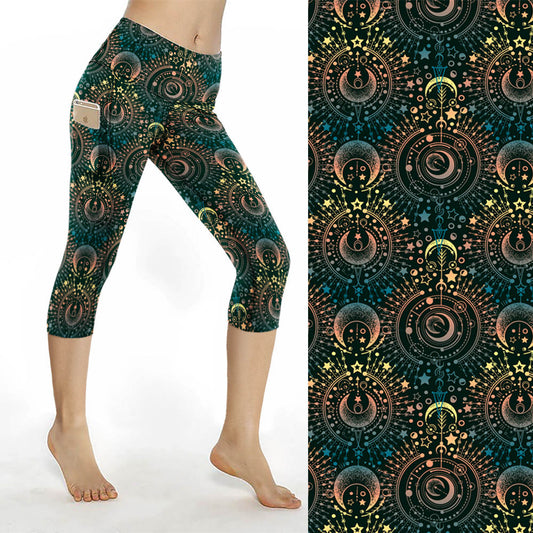 Black Leggings w/ Patterned Pockets - Sun & Moon