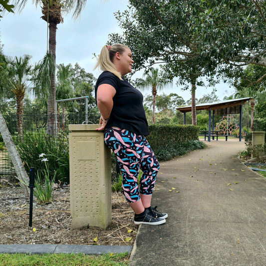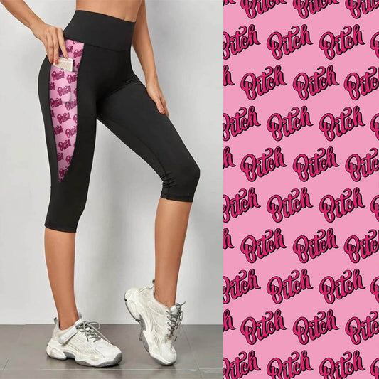Pink Filigree Swirl Yoga Band Capri w Pockets