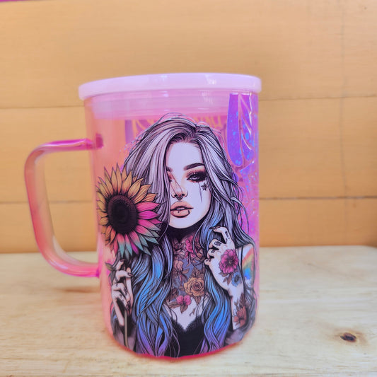 Sunflower & Mandala Finger Pink Ombre Glass Tumbler - 16oz
