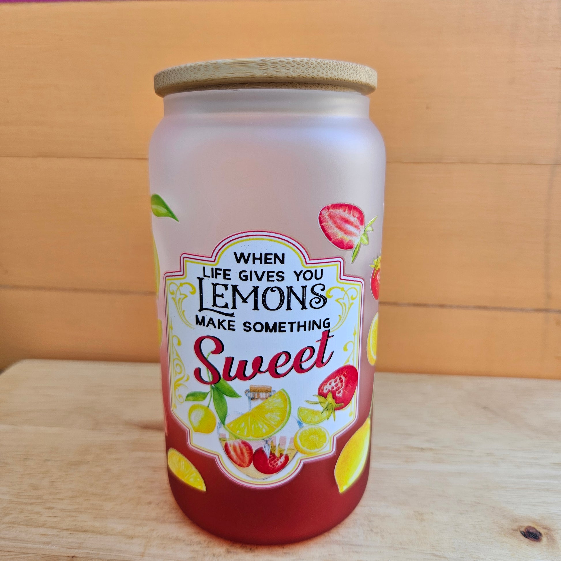 Quench your thirst with a hint of lemon while sipping from the Make Something Sweet Red Ombre Frosted Glass Tumbler. The frosted glass adds a touch of sophistication to your beverage, making it simply refreshing in any setting. Perfect for those who like a little zest in their life!